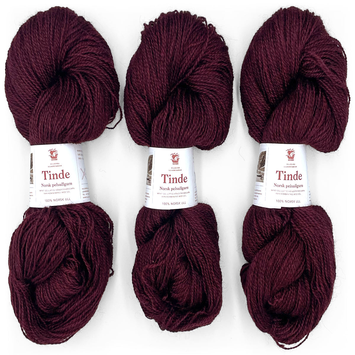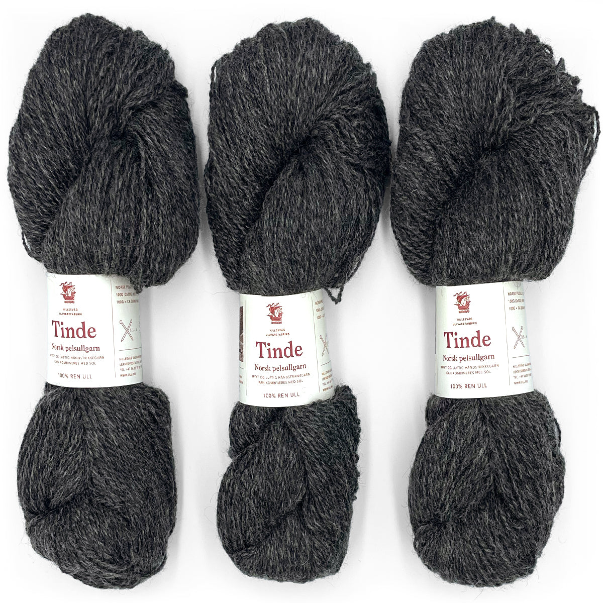 Tinde is a DK weight yarn spun from fibre from the Norwegian pelssau breed which has a lustrous, curly fleece with a quite soft, fine hand. The Norwegian Pelssau (also known as Norwegian Pelt or Norwegian Fur Sheep) originated as a cross between Gotland and Old Norwegian (also known as Wild Sheep) and its wool is dark grey, grey and white coloured combined. The mixed coloured fibres result in a perticular debth and richness of colour when dyed, but due to the nature of the wool it does not come in a pure white.