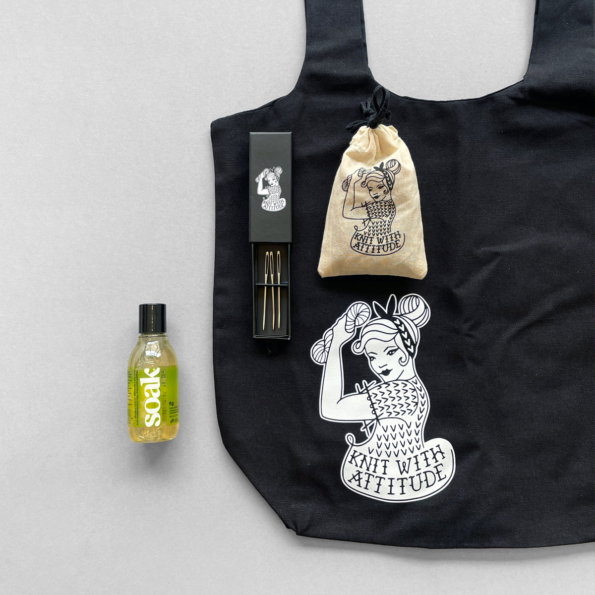 The KWA Care Bundle gathers those essentials for taking care of both current projects and future FOs (Finished Objects) - with a flair!