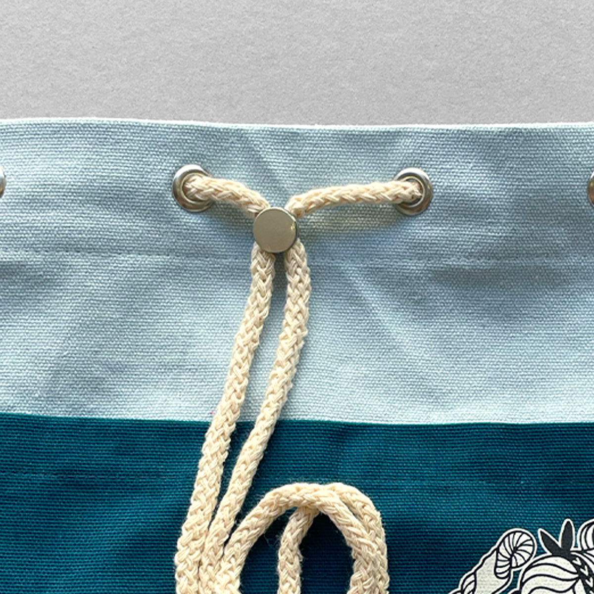 The KWA Ditty Bag is made in 12oz cotton canvas, with a long drawstring closure that is held in place by a metal spring clasp. The base is double lined allowing the bag to stand upright. It has two wide outside pockets on the back and front, perfect for easy access to your notions.